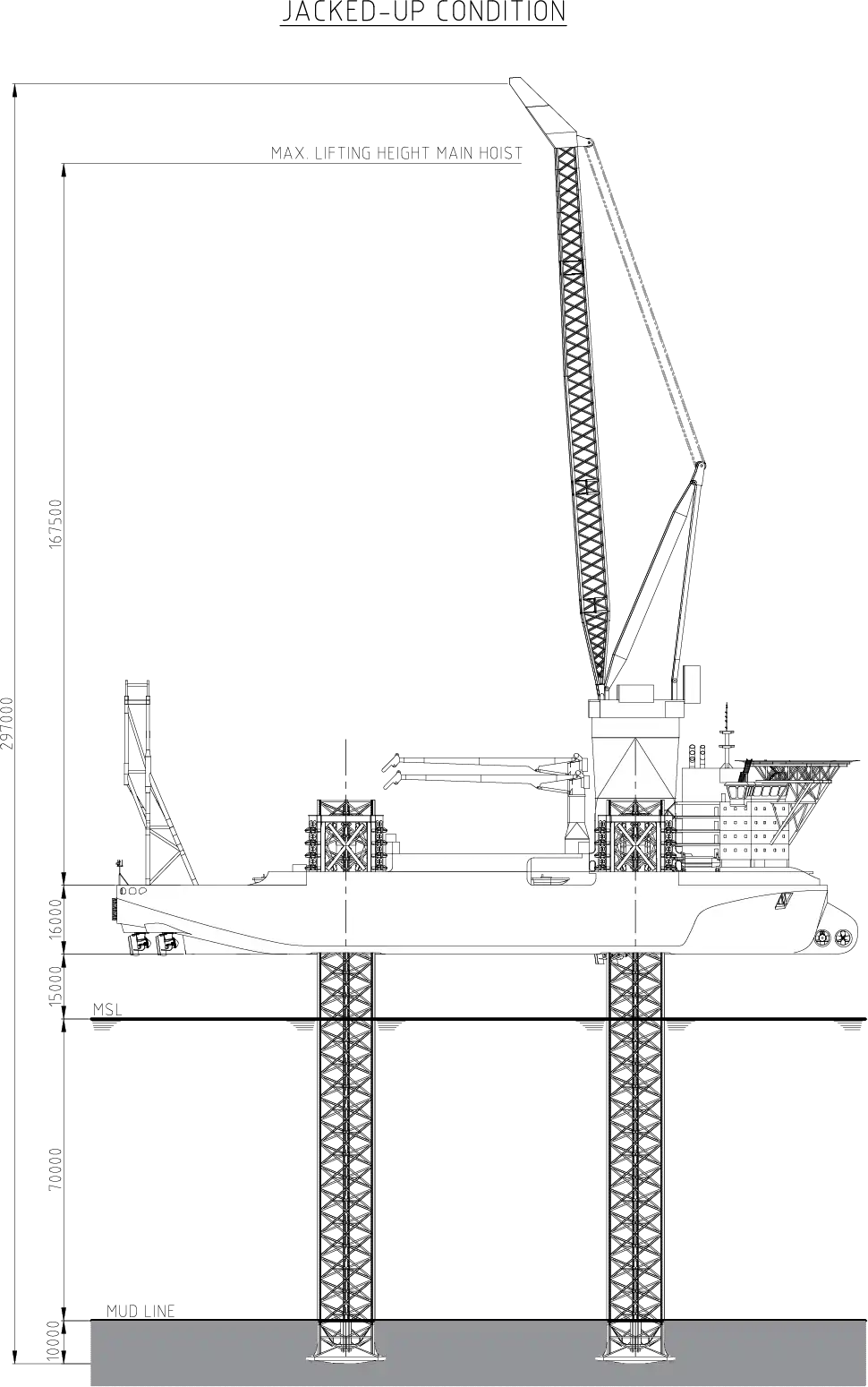 FEEDERDOCK is a fixed to fixed offshore installation method. A U-shape jack up main vessel remains permanently on site, while two feeder vessels shuttle components and operating material from port. Each feeder docks into the moonpool and jacks up together with the main vessel as one unit. This supports a continuous feedering process with reduced offshore transfer risk.